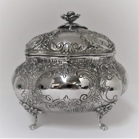Hans Hansen. Bonbonniere med sølvlåg (925). Diameter 19,5 cn. Produceret 1934.