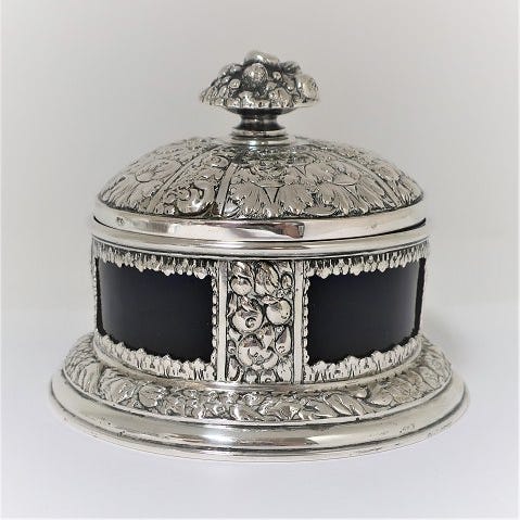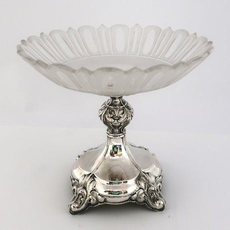 Sølvopsats med glas skål (830). Højde 19 cm. Diameter på glas er 22 cm.