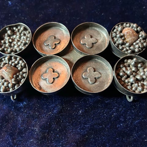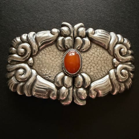 Jugend Sølv bæltespænde (830) med 6 grønne sten. Længde 7 cm