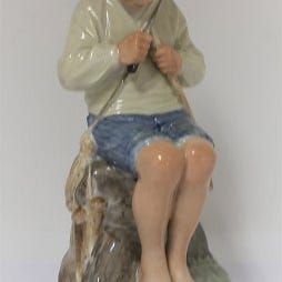 Royal Copenhagen. Porcelænsfigur. Siddende dreng i farver. M