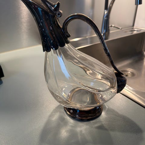 Karaffel med sølvmontering (830). Højde 27 cm.