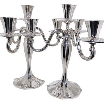 E.T.J. (Kaj Erhard Thygesen Jakobsen, København). Sølv 3-armet lysestage (925). Højde 19 cm.