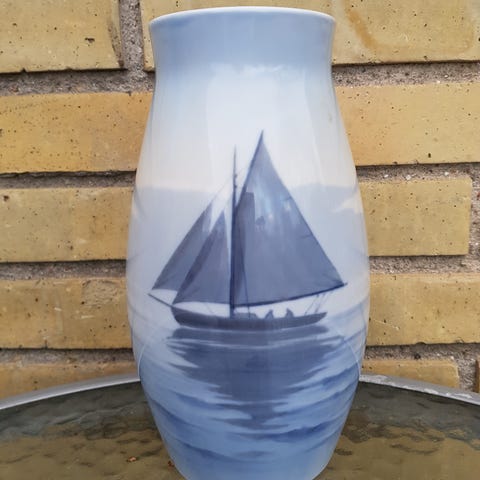 Bing & Grøndahl. Porcelæns vase med motiv af en slæbebåd. Model 8715/460. Højde 21 cm. (2 sortering)