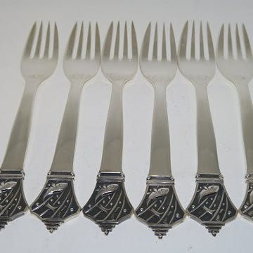 Evald Nielsen. Sølvbestik (925). Pålægsgaffel. Længde 14,5 cm