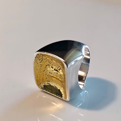 Hans Hansen. Sølvring (925) med 2 røgfarvede sten. Ringstørrelse 50
