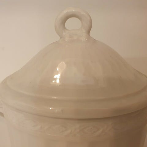 Royal Copenhagen. Hvid vifte. Lille sukkerskål. Længde 11 cm. Højde 9,5 cm. (1 sortering)