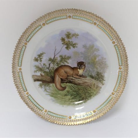 Royal Copenhagen. Fauna Danica. Jagtstel. Frokost tallerken. Model # 239 - 3550. Diameter 22 cm. (1 sortering). Mustela zibellina. Tallerken er med reparation. (se foto)