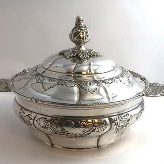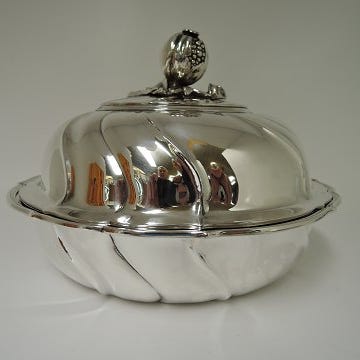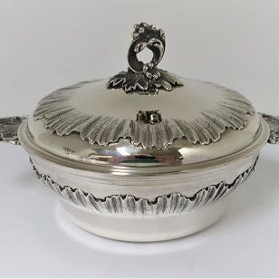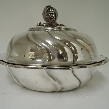 Michelsen. Rundt sølv lågfad (925). Diameter 23 cm. Indvendigt forgyldt. Produceret 1908.
