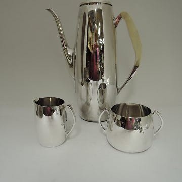 A F Rasmussen. Sølvkaffe service (925). Bestående af kaffekande, flødekande og sukkerskål. God kraftig kvalitet.