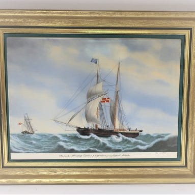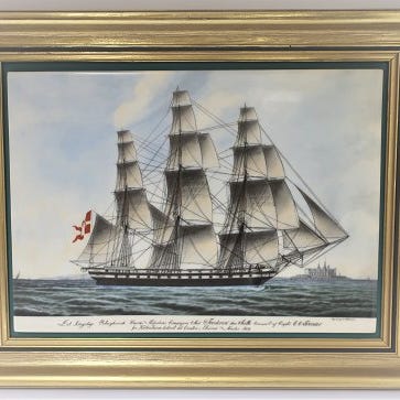Bing & Grøndahl. Porcelæn. Billed af "Fregatten Jylland. Mål