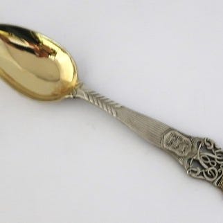 Michelsen. Sølv (925) Mindeske. Fir kongeske 1899. Ske. Længde 15,5 cm.