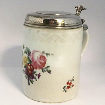 Royal Copenhagen. Bonbonniere af porcelæn, låg med motiv fra Kastellet, Kongeporten. Montering af forgyldt sterlingsølv, A. Michelsen, København 1921. H. 9 cm.