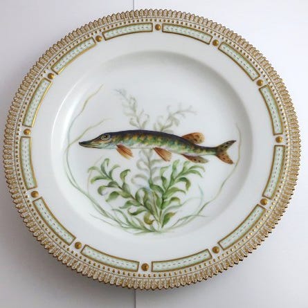 Royal Copenhagen. Fisketallerken med grøn kant. Model 919/17