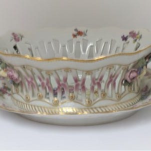 Royal Copenhagen. Saksisk blomst. Firkantet kagefad med gennembrudt kant. Længde 22 cm. ( 2 sortering )
