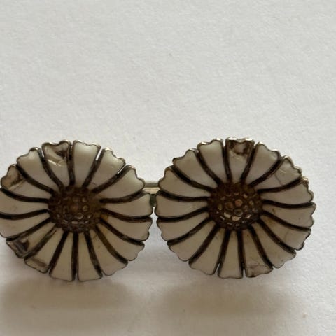 Michelsen. Marguerit Broche med hvid emalje. Diameter 4 cm.