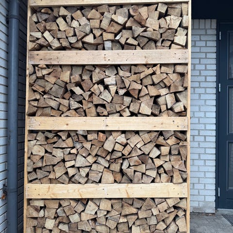 Har ca 15 rum meter tilbage ,bøgebrænde skovet oktober 23 , da jeg har fået varme pumpe bruger jeg ikke så meget mere .Overflade vådt har ligget ude over 2 år efter flæk. Der er store stykke i mellem op til 45 cm.