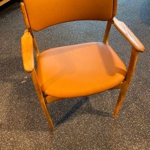 Rigtig flot og velholdt armstol med sort læder og bøg