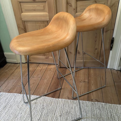 Gubi 3D bar stool i farven “nightfall blue” og med stel i sort træ. Vi sælger også spisebordsstol, der passer til. Siddehøjde: 76cm