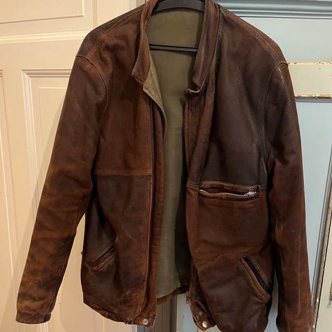 Absolut Lækker Italiensk Læderjakke. brugt 2 gange som NY mørkebrun oilskins Læder