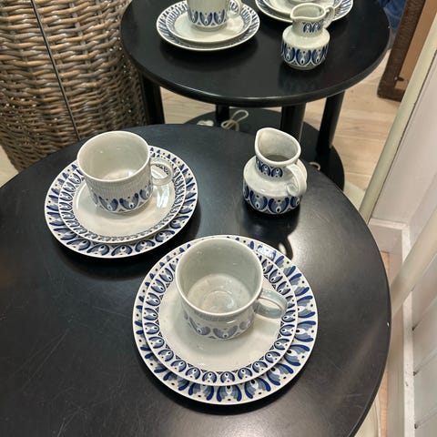 Flotte kaffe/tekopper med underkop og kagetallerken.