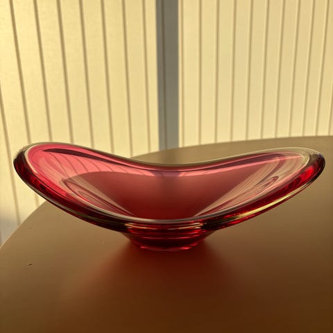 To stk. Flygsfors vaser den ene 26 cm den anden 21 cm, Fad 33 cm designet af Paul Kedelv
