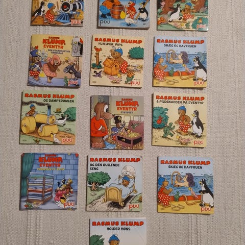 Sælger alle mine 24 rasmus klump pixi bøger de er ikke læst i de er som nye fejler ingenting ikke kaffe pletter fedtet stads osv kommer fra et IKKE ryger hjem og et IKKE dyr hjem