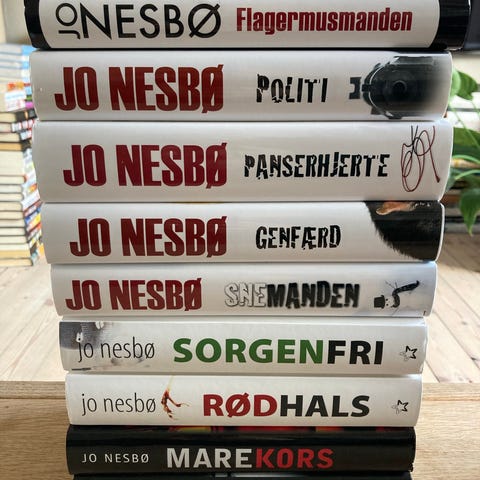 Jo Nesbø. Hele Harry Hole serien på nær Blodmånen, som er den sidste i serien. Sælges kun samlet. Skal afhentes.