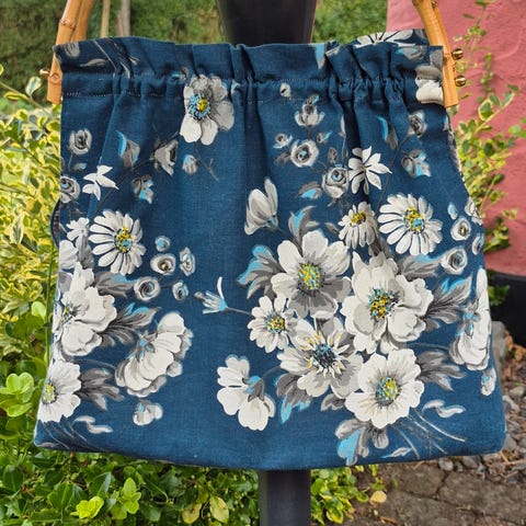 Super fin gammel håndtaske med bambushåndtag. Den har nogle små pletter på hver side - ikke forsøgt fjernet - se billeder. Den har 1 stor lomme og 2 små lommer indvendigt.