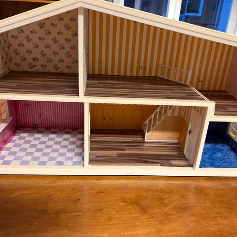 Dukkehus, Gratis levering centrum af København., Lundby dukkehus 4 rum. Brugt. Alt fungerer fint, Der er hvad du ser. Har lidt brugsspor, derfor den lave pris. Det er helt intakt, bare sat op til foto.
