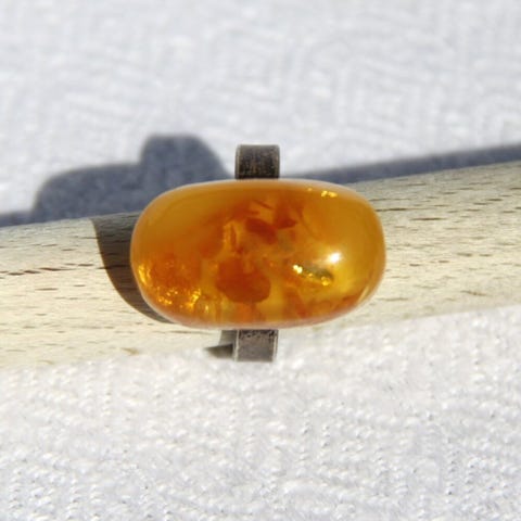 Einar Fehrn sølvring med indlagt rav hele vejen rundt. Udført i et enkelt tidsløst design. Str. 58.