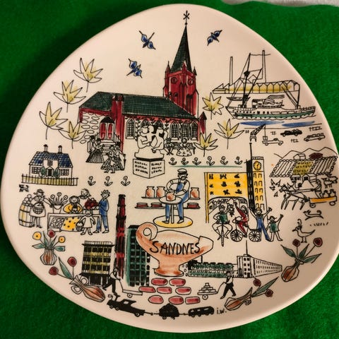 Platterne Jesperhus, Tjele Langsø Campinger og Tjele Steen Steensen Blicher er fremstillet af Stavanger Flint Norge, designet af Inger Waage - hyggelige gamle platter med motiver fra Danmark - alders krakelering kan forekomme.