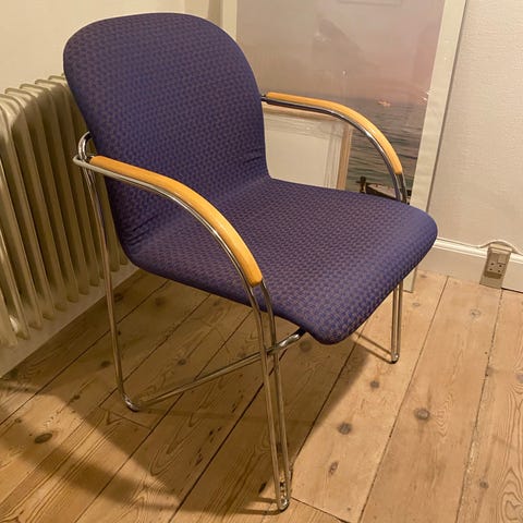 Har også 2 Labofa borde 80 * 120 cm, som passer til stolene, hvor stolene kan hænge under. 125,- kr pr stk