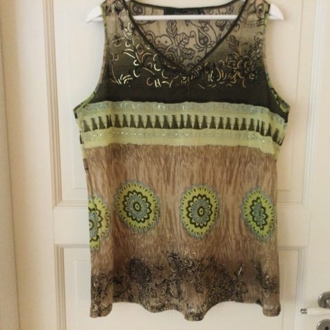 Zizzi top m. leopard mønster str. M. Helt ny med prismærke. Guldfarvet flettet "metal" på stropperne. Sidder løst på kroppen.