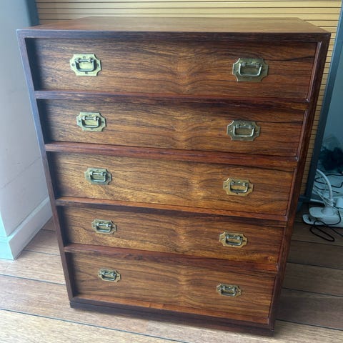 med 5 skuffer og messing beslag