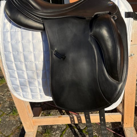 Erreplus Adelinde sadel. Sort. Ren luksus saddel i det lækreste skind. Ny omstopning med uld. Ikke brugt siden omstopning så den vil tilpasse sig en ny hest.