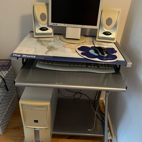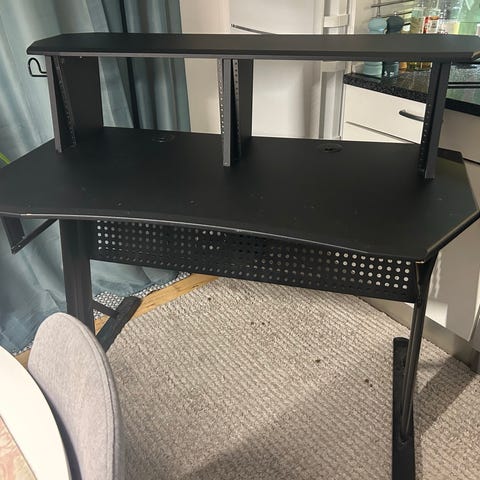 Super praktisk computerbord til hvis pladsen er trang. De to øverste plader kan begge justeres trinløst i højden 63-89 cm.