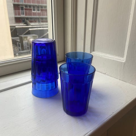 Glas med blå kant, blå fod