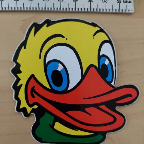 To farverige klistermærker fra 70'erne som dem vi satte på vores knallerter.
