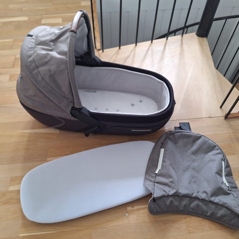 Den sorte hedder " Babycare ", er uden overlæder og den brune har ingen navn, men er som ny. Det følger madras med begge. 100 kr for den sorte og 200 kr . for den brune.