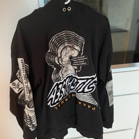 Du modtager en sweatshirt med fedt tryk, og i flot stand uden fejl
