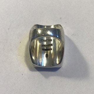 Håndlavet vintage fingerring fremstillet af Palle Bisgaard omkring 1960’erne. Hans smykker er ret efterspurgt og derfor ofte bekostelige. Sterling sølv med abeloneskal. Stemplet. Jeg tror det er omkring str 53-54. Har en del brugsridser - deraf prisen. Dog ikke særligt tydeligt, når den sidder på fingeren.