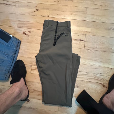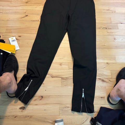 Super skinny stretch bukser. Størrelse 36 dvs x-small. Aldrig brugt med prismærke hængende endnu. Mørk blå farve. Smalle forneden med lynlås. Der er medfølgende kæde som kan tages af