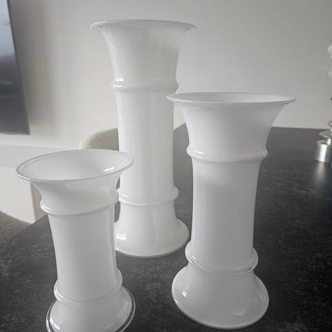 2 stk Opal vaser fra Holmegaard Glasværk 17 cm høj og 6 cm i diameter målt i toppen sælges samlet