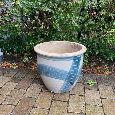 Har stået på altan. Højde 26 cm. Diameter 34 cm. 32 cm på indersiden.
