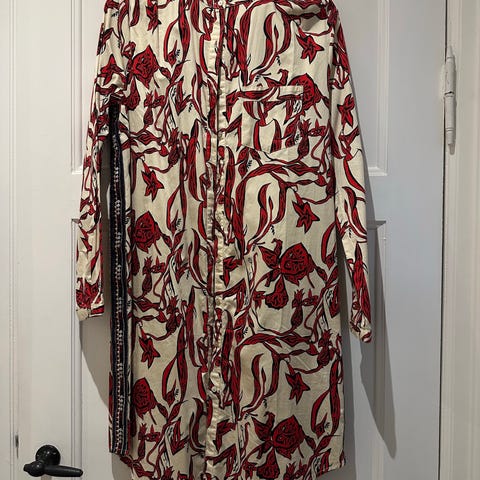 Skjortekjole, Second Female, str. M, Beige, sort og brun, Bomuld, God men brugt, Dejlig skjortekjole fra Second Female, som ikke er meget brugt. Den fremstår pæn og velholdt. Det er en M. Men den er rigelig og passer fint 40/42. Mål ærmegab til ærmegab er 58 cm og længde fra skulder og ned er 112 cm. Røg-og dyrefrit hjem. Henvendelse kun på annoncen. Tak.