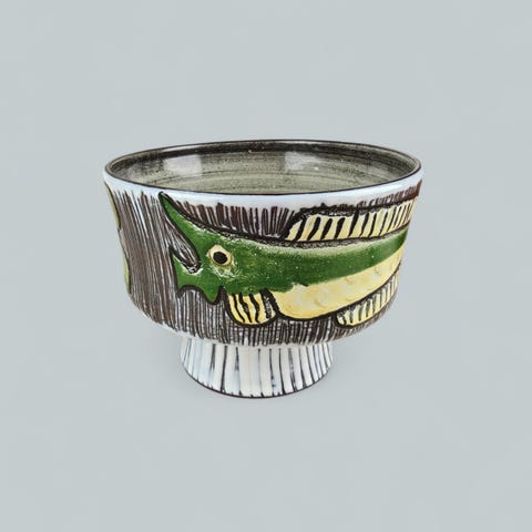 Flot skål af Olof Georg Hermansson fra 60'erne med den flotteste syregrønne glasur indvendig. Har ingen revner.