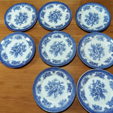 5 smukke spisetallerkener og 5 “sidetallerkener” fra norske Egersund. De er klassiske og robuste. Tallerkenerne er brugte - men uden skår og i en fin stand. Især to af “sidetallerkenerne har lidt aftagning på bagsiden. De store tallerkener har en diameter på ca. 24 cm, mens diameteren på de små er ca. 17 cm. Det er en samlet pris for alle 10 tallerkener. Ønsker du at kun at købe nogle, så kontakt mig.