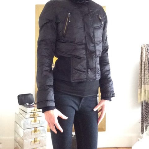 Helt ny, ubrugt dynejakke, lun og let, sælges da den desværre er for lille til mig. Mål bryst 120 cm, længde, 84 cm. Ca. str 44/46. Med lommer, hætte, lynlåslukke. Skøn til overgang, vindtæt. Nypris 580 kr.