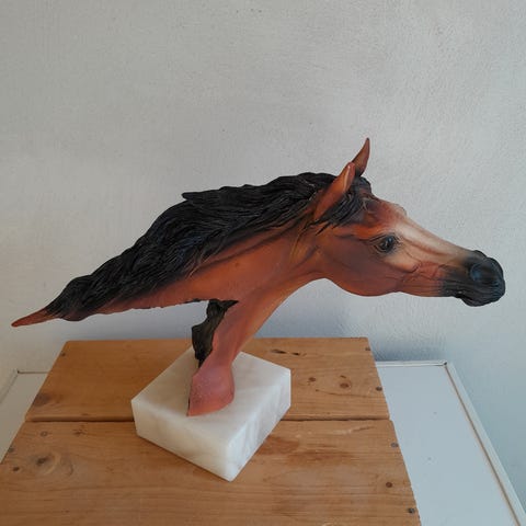 Antik hest måske orientalsk i bronce stående på sort marmor fod. Hest står løst på sokkel ellers ingen skader