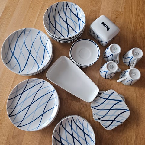 2 sæt. kop, underkop og kagetallerkener 40 kroner